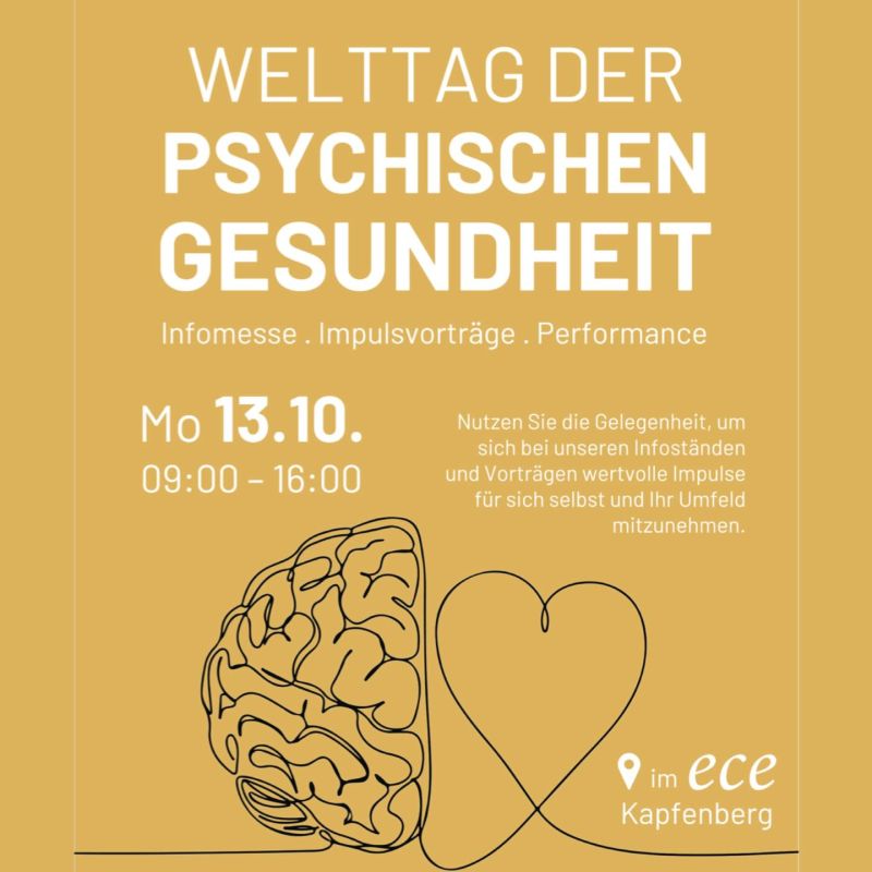 Am 13.10. veranstalten wir vom Gute Geschichte Verein @gute.geschichte von 09.00 – 16.00 in Kooperation mit Verena Reitbauer von GO-ON einen großen Tag der psychischen Gesundheit im ece Kapfenberg. @ece_kapfenberg